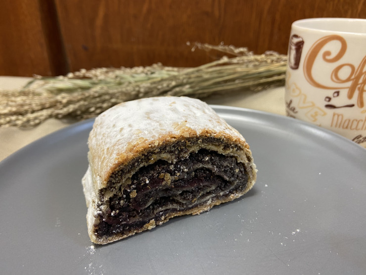 Štrúdľa z pšeničnej múky bohato plnená makovo-jablkovou plnkou.