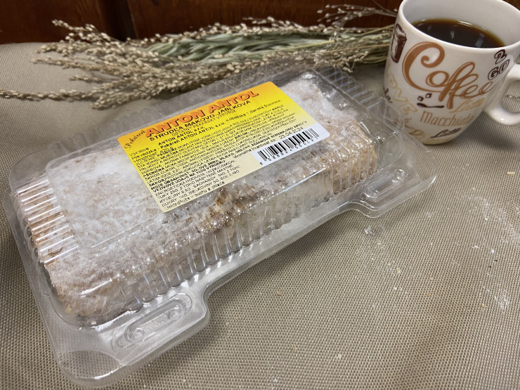 Štrúdľa z pšeničnej múky bohato plnená makovo jablkovou plnkou. Balený výrobok.