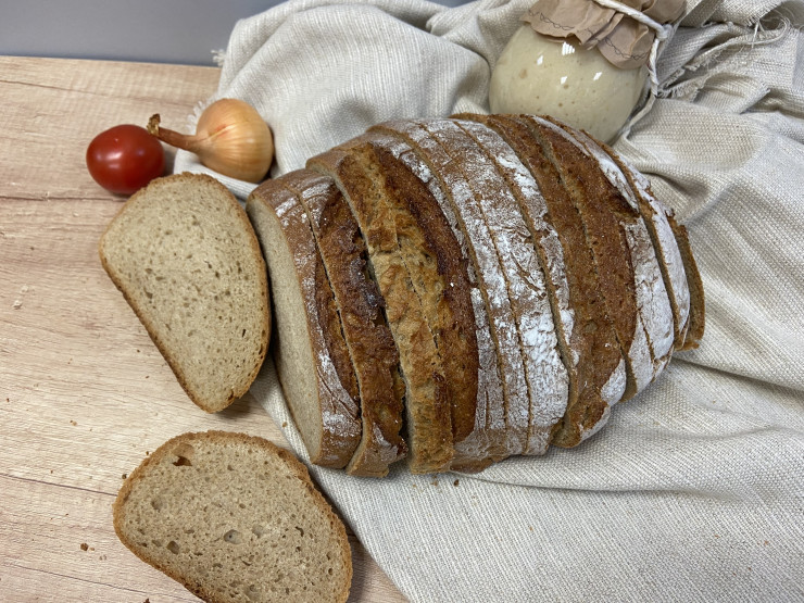 Chlieb okrúhleho tvaru z ražno-pšeničnej múky, krájaný, balený.