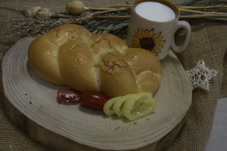Pletenka zapletená z troch častí do vrkoča. Na povrchu je potretá cesnakom.